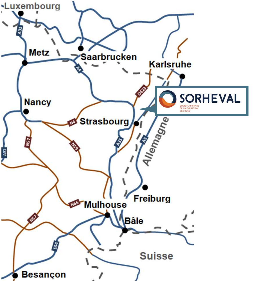Située à Vendenheim, à proximité directe de Strasbourg et de son Eurométropole, SORHEVAL (Société Rhénane de Valorisation des sols) exploite une Installation Classée pour la Protection de l’Environnement (I.C.P.E.).